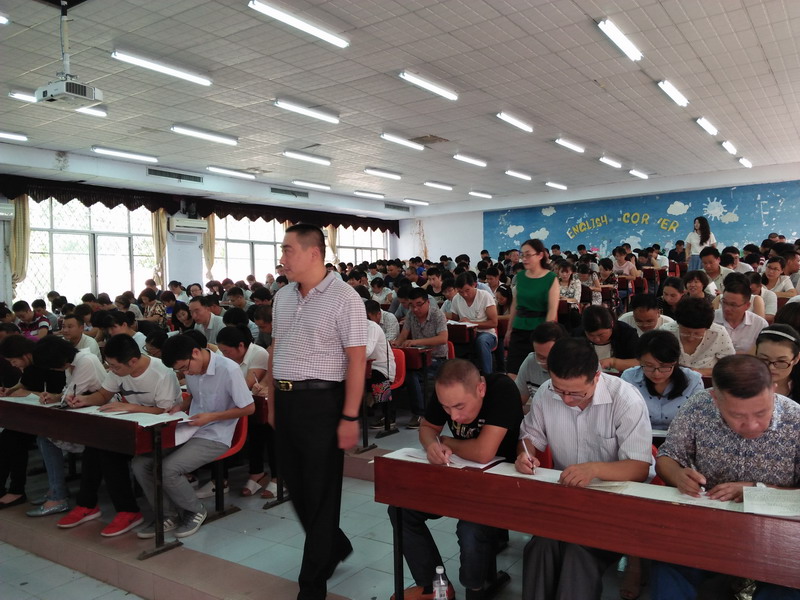 9月13日下午,来自罗庄区大中小企业及政府各机关专业技术人员300余人在我院进行了继续教育培训考试。各参考人员认真答卷,圆满完成2016年度公共专业课的学习和考试,罗庄区人社局副局长姜英同志与区科协继续教育基地岳科长一起到现场巡视。